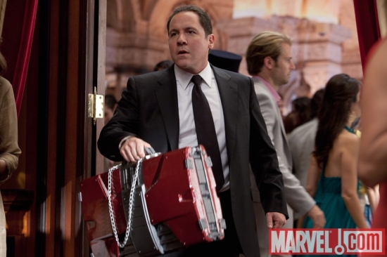 จอน แฟฟโรว์ ...Happy Hogan โฮแกน ทั้ง กำกับ / และแสดงเป็นโฮแกนผู้ขับรถผู้ช่วยของโทนี่กำลังหิ้วชุดเกราะใหม่ไปให้